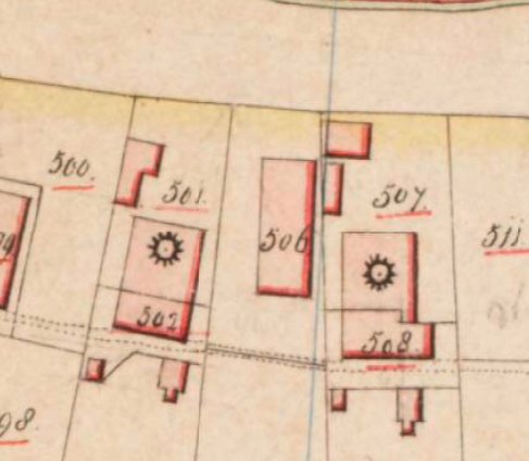 Molen grutmolen van Arnoldus Wiel (Berghem), detail van de Kadastrale kaart 1811-1832: Berghem, Noord-Brabant, sectie B , nr 507, Arnoldus Wiel, rosgrutmolen en erf | Database Nederlandse molens