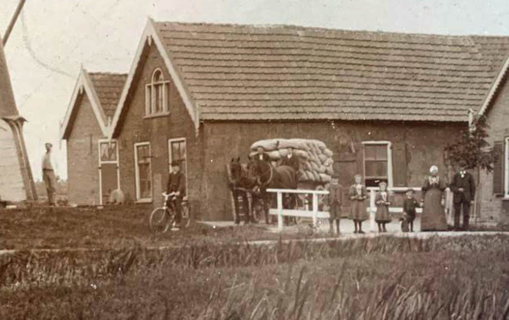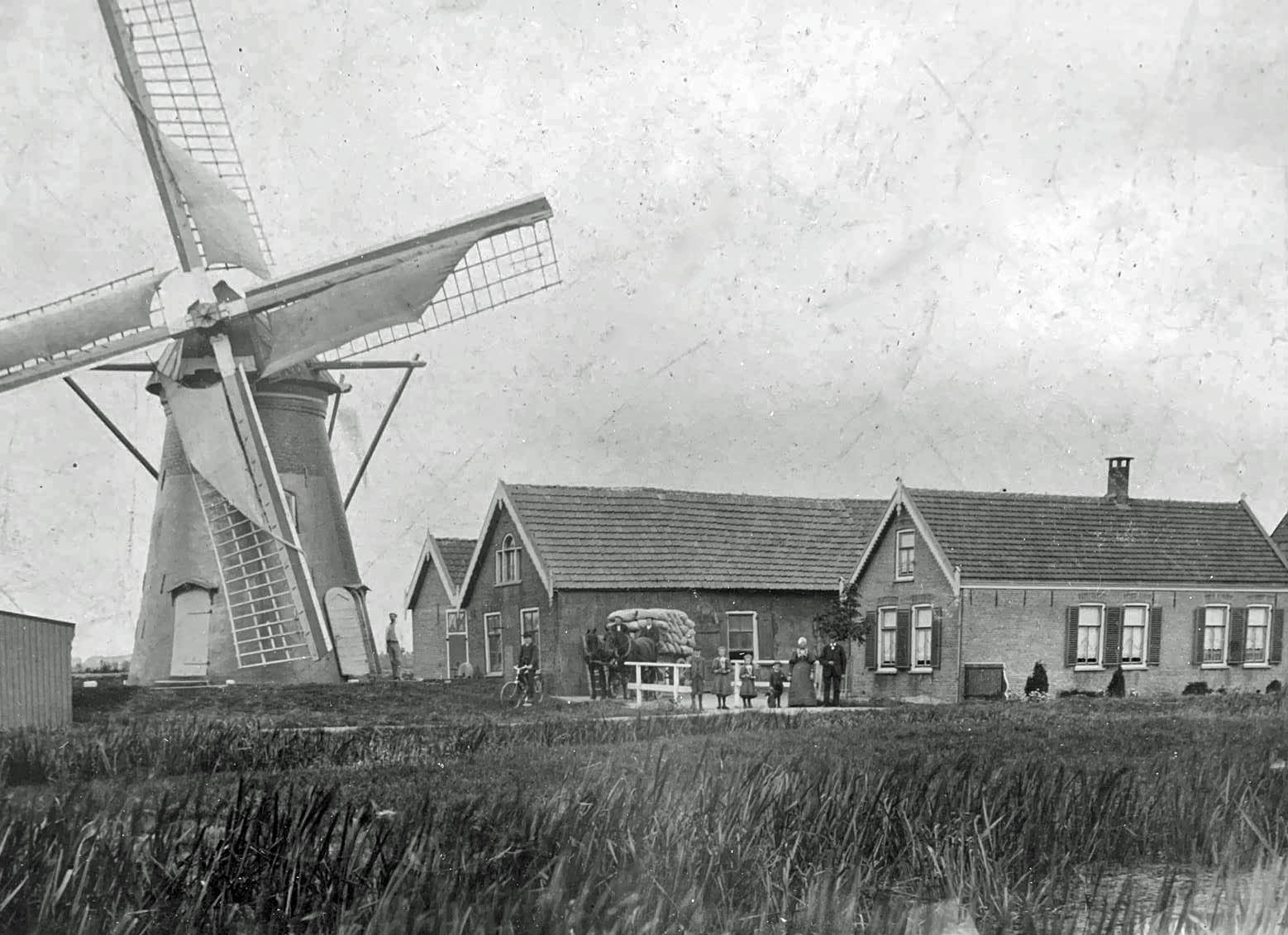 Op de foto staan vlnr. Willem Bor, zijn vrouw Neeltje Bor den Braanker, zoon Cornelis, dochter Maggeltje, dochter Grietje ( de moeder van diegene waarvan ik de foto heb gekregen.) zoon Bertus en zoon Willem op de fiets gezeten. De namen van de overige personen zijn onbekend. De familie Bor bewoonde een van de bij de molen behorende woningen. Informatie van S.G. de Vos, 08-10-2025