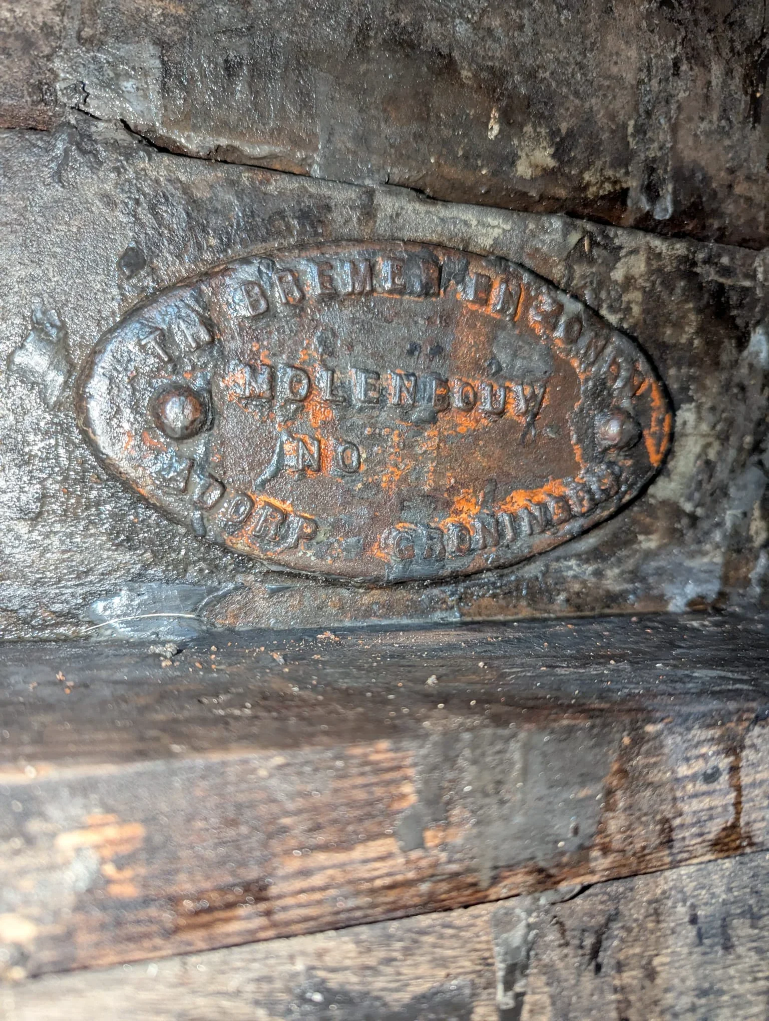 Gietijzer, Gietijzeren hals'steen' met in de baan een laagje babbits. Fabrikaat Bremer Adorp.