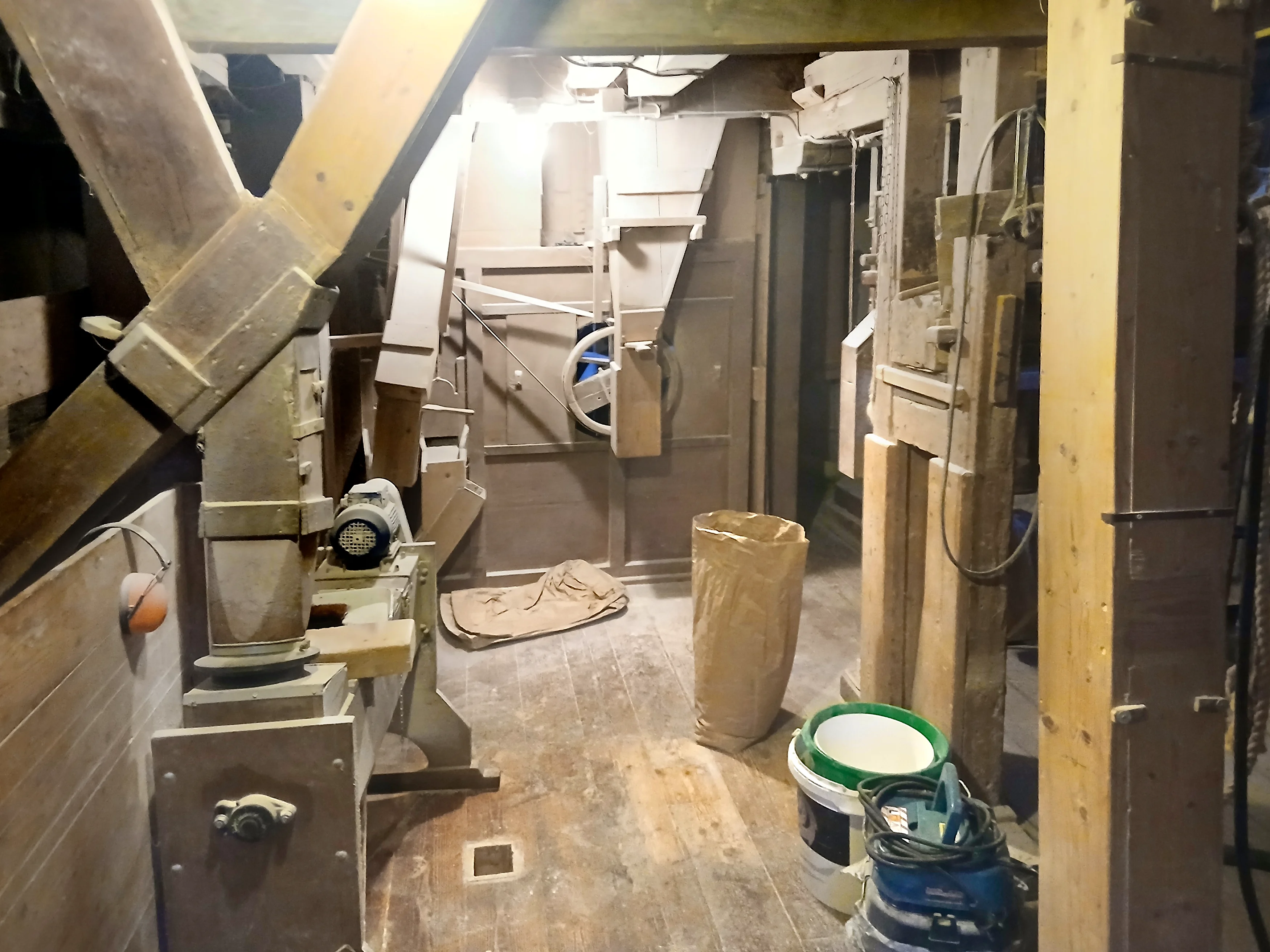 Henk Postema schrijft: tijdens een middagje malen hing er net een fijne meelwolk sprookjesachtig belicht door de invallende zon.