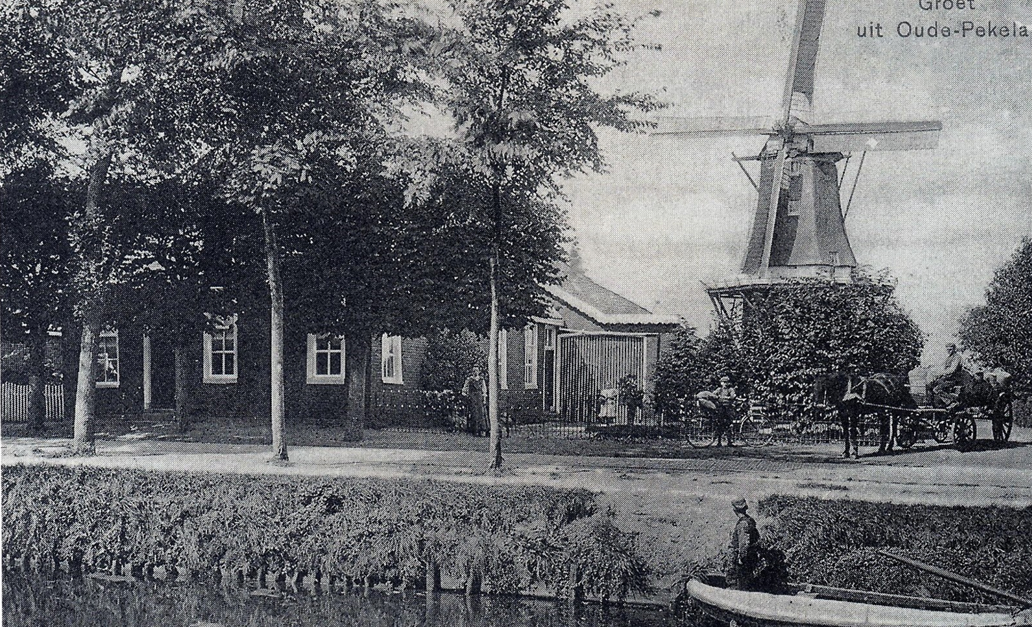 "Door onbekende oorzaak brandde maandagavond te Nieuwe Pekela de groote windkorenmolen van den heer J. Vissinga geheel uit. De groote, een viertal huizen verder staande boerenbehuizing van den heer Zandsmit geraakte eveneens in brand. Alleen het voorgedeelte staat nog. Een tweetal motorspuiten trachtten het vuur te stuiten.