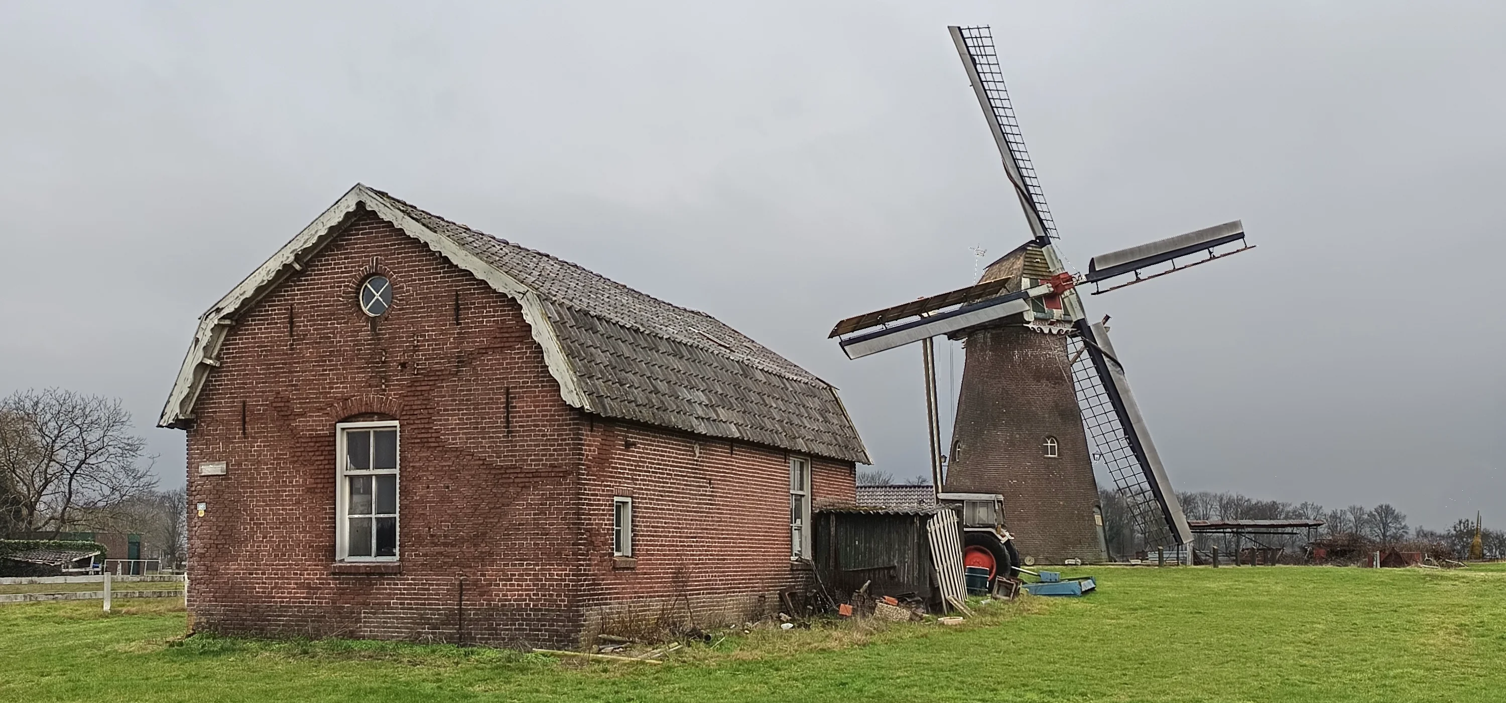 Het complex met links ''De Stoom'' (de maalderij) en rechts de molen. Een combinatie van complete molen en maalderij vind je niet vaak meer in de Achterhoek.