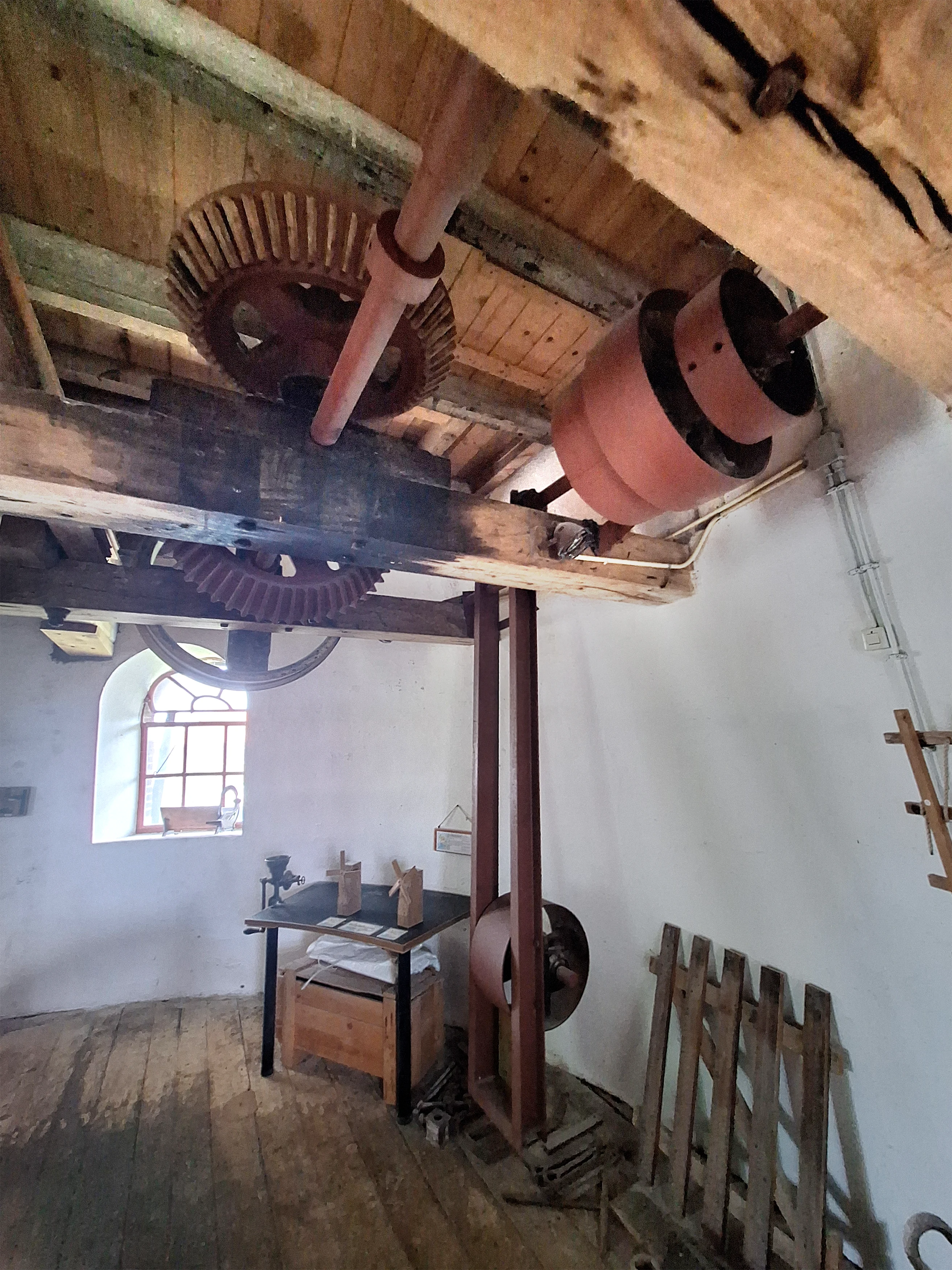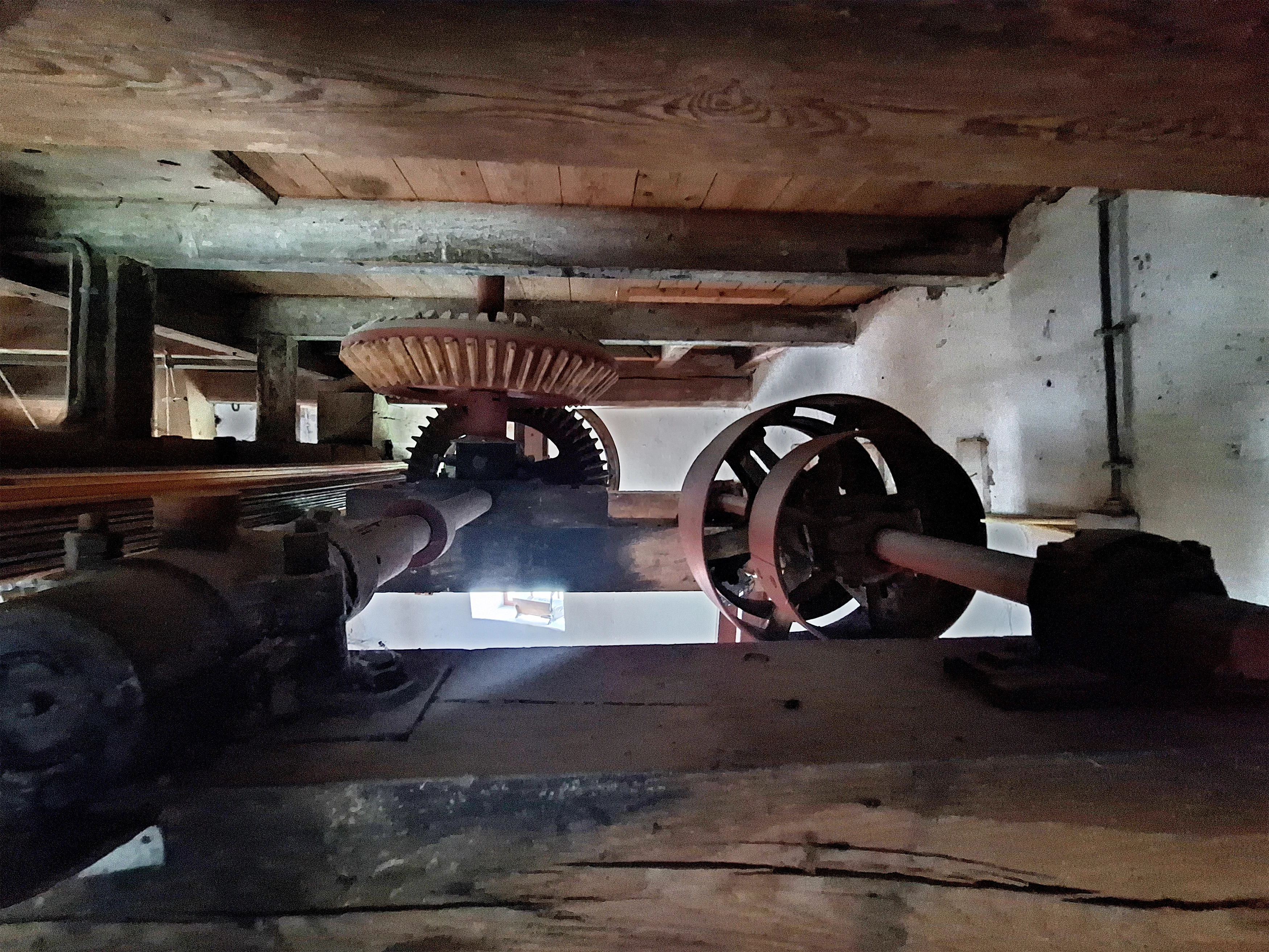 De uitneembare kammen van het bovenwiel, uit de tijd dat het gaande werk nog op de motor kon worden aangedreven.