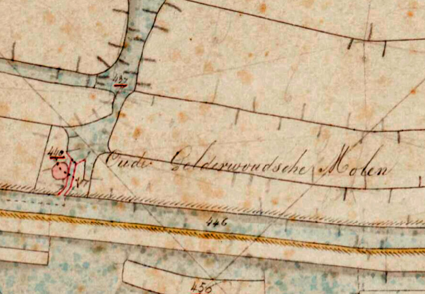 Molen 00960 Oude Gelderswoudsche polder, De Steenen Beer (Zoeterwoude)detail van de Kadastrale kaart 1811-1832: minuutplan Zoeterwoude, Zuid-Holland, sectie D, blad 03, nr 440 (MIN08236D03)