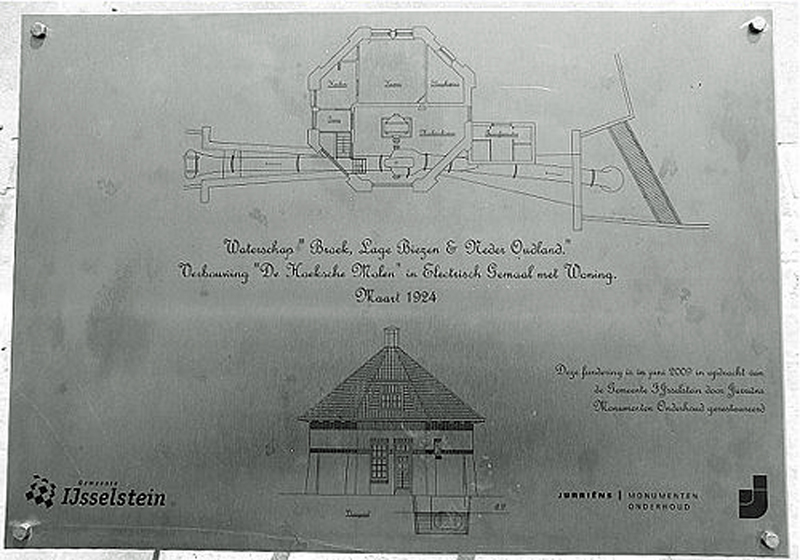 1884: Mogelijk was er al in 1884 een gemaal in de gesloopte Hoekse Molen, die dan waarschijnlijk in 1924 overging op elektrische aandrijving. De molen bemaalde samen met nog twee molens de polder Broek, Neder Oudland en Lage Biezen op de Hollandse IJssel via de Hoekse Molenvliet. Ook deze drie molens verloren in 1924 hun functie na de in gebruikname van het gemaal.