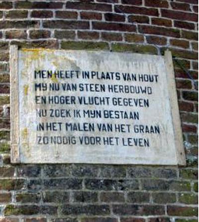 de molen is de opvolger van de standerdmolen, waaraan een gedicht op een tweede gedenksteen herinnert: