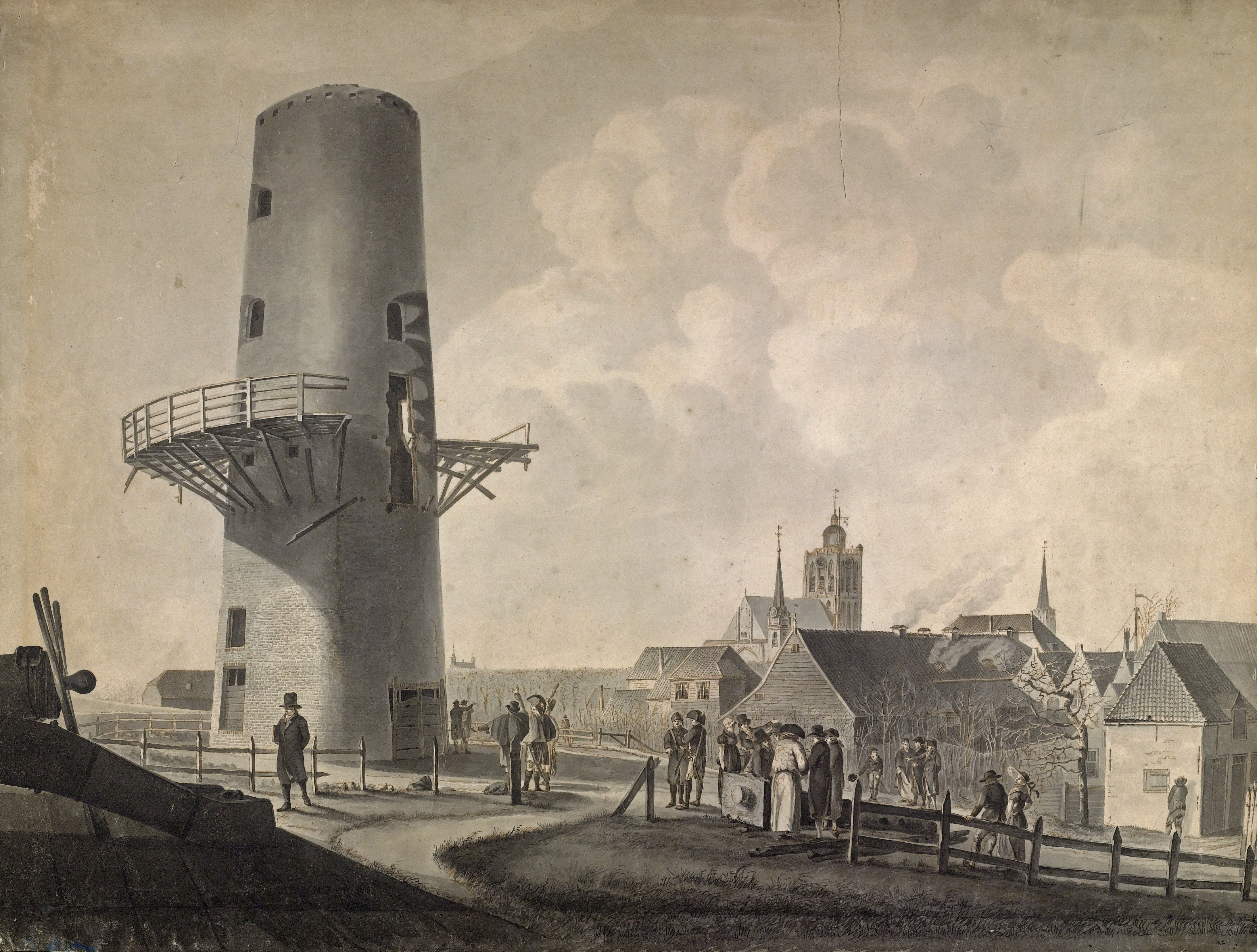 Molen 01908 a Het Vliegend Hert (Brielle)Inkttekening Noordermolen of Het Vliegen Hert na de brand van 1810, collectie Streekarchief Voorne-Putten