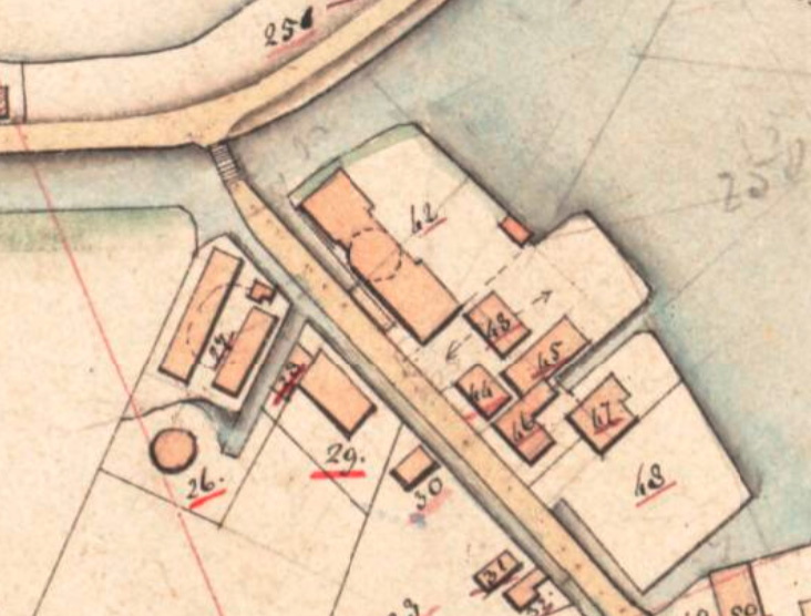 Molen 02552 f De Leeuw (Nieuwendam)detail kadaster, nr 26 is de zaagmolen en nr 42 de krijtmolen