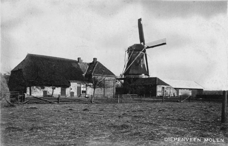 Molen 02623 Diepenveensche Molen (2e) (Diepenveen)De molen met het molenaarshuis, nog vóór de brand van 1933, coll. Bussink