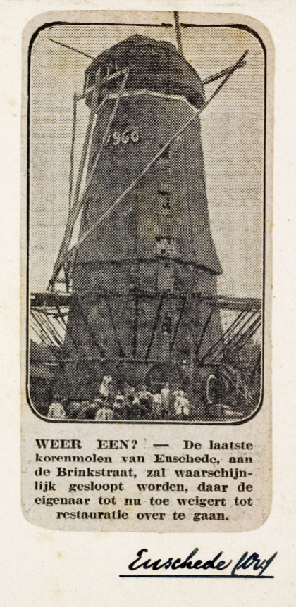 Molen 02672 Reetmölle / Rietmolen / Heusinkveldmolen (Enschede)Telegraaf , datering:14 september 1929 - bronnen