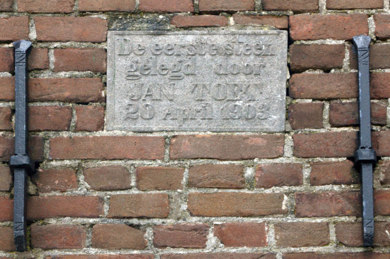 Er zit boven de deur een gevelsteen in gemetseld met de tekst: