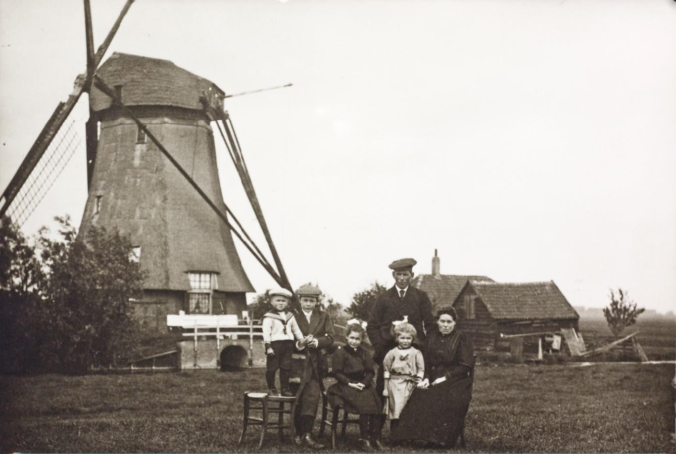 Molen 02887 h Bleiswijkse Droogmakerij, No. 14 / C2bovenmolen (Bleiswijk)Foto coll. DHM. Op de foto de laatste molenaarsfamilie