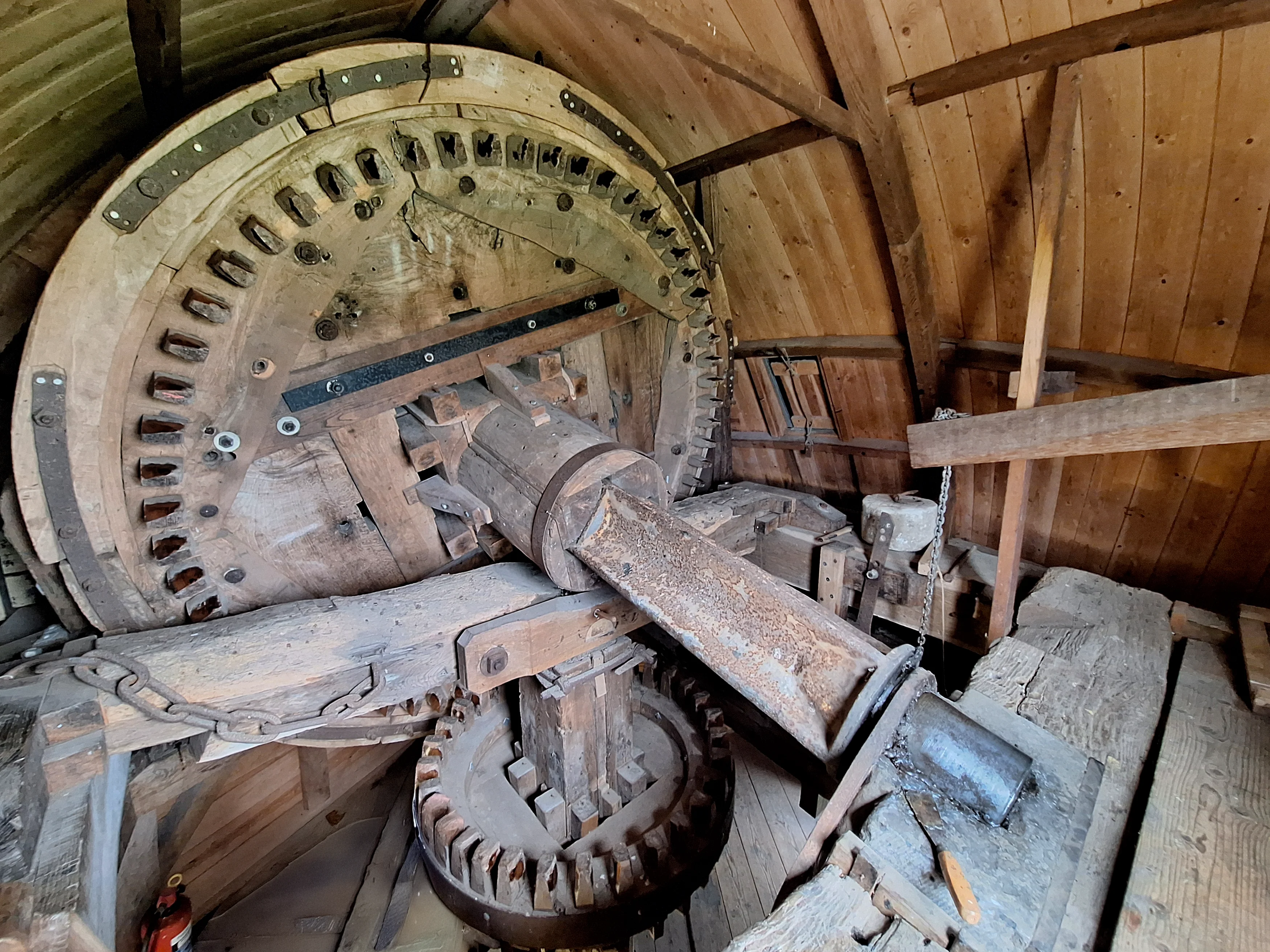De kap draait niet op rollen maar op blokken en moeten regelmatig ingevet worden. Het kruien van de kap is hierdoor zwaar werk.