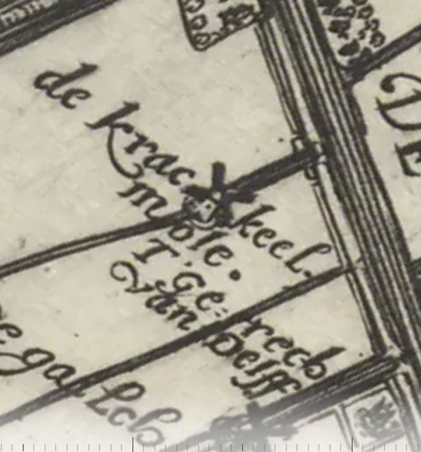 Molen 03611 i Krakeelpolder / Hoge Abtswoudsche Polder (Delft)Ware afbeeldinghe van Delflandt 1611|ghemeten, ghecaerteert ende int licht gebracht door Meester Floris Balthasarsz. anno 1611.1:28 000, bron: oldmapsonline