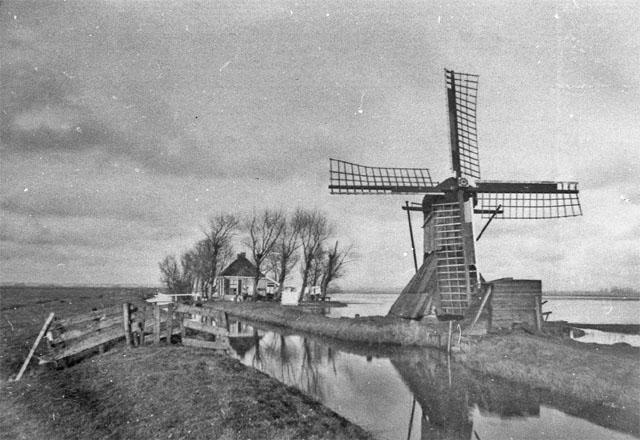 Molen 03789 Polder 85/ Himrikspolder, De Himriksmolen / Hemriksmolen / Himriksmone (Leeuwarden/ Ljouwert)coll DHM, foto W.O. Bakker, maart 1948