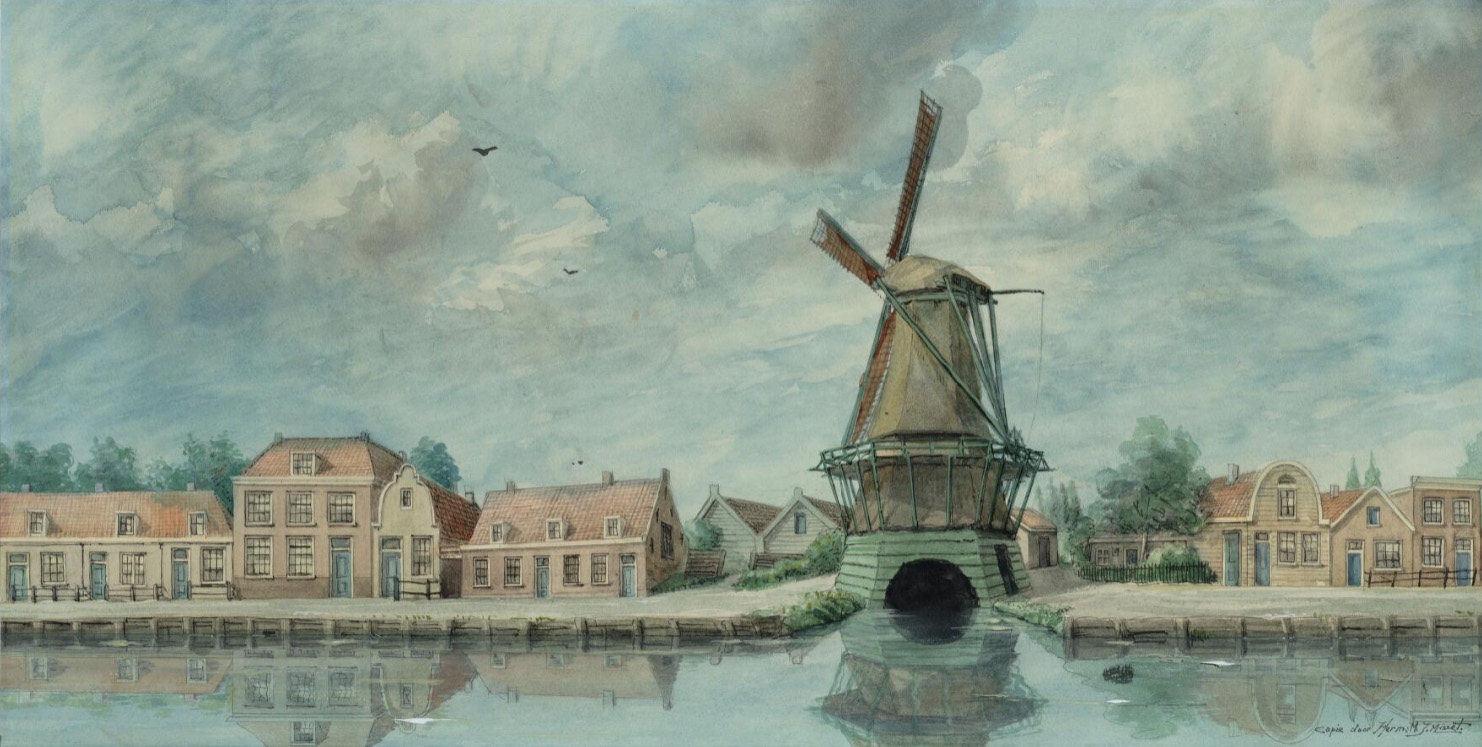 Molen 06493 l De Wolf (3e) (Amsterdam)Tekening van Misset, H.M.J. (1875-1958), ca 1900.