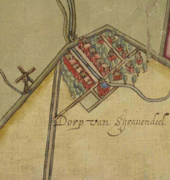 Molen 06903 d Het Vliegend Hert  1e voorganger ('s-Gravendeel), Detail van een kaart rond 1617:  Inventaris van de verzameling binnenlandse kaarten Hingman, ca. 1500-1813 | Database Nederlandse molens