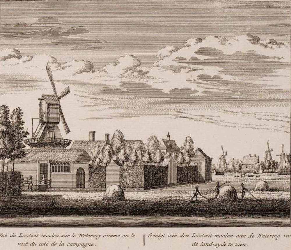 Molen 07225 De Stamper (Amsterdam)Tekening: G. Kondet (graveur), 1764 (bron: GAA)