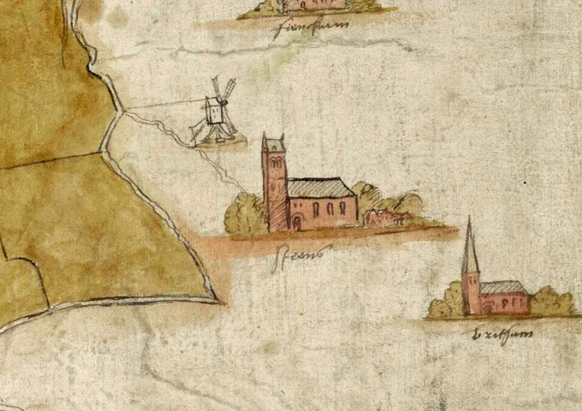 Standerdmolen op detail kaart 1545, collectie Nationaal Archief