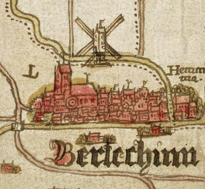 Molen 07982 Korenmolen van Berlikum (Berlikum/ Berltsum)Kaart van Jan Jansz Coster van het Bildt, 1570