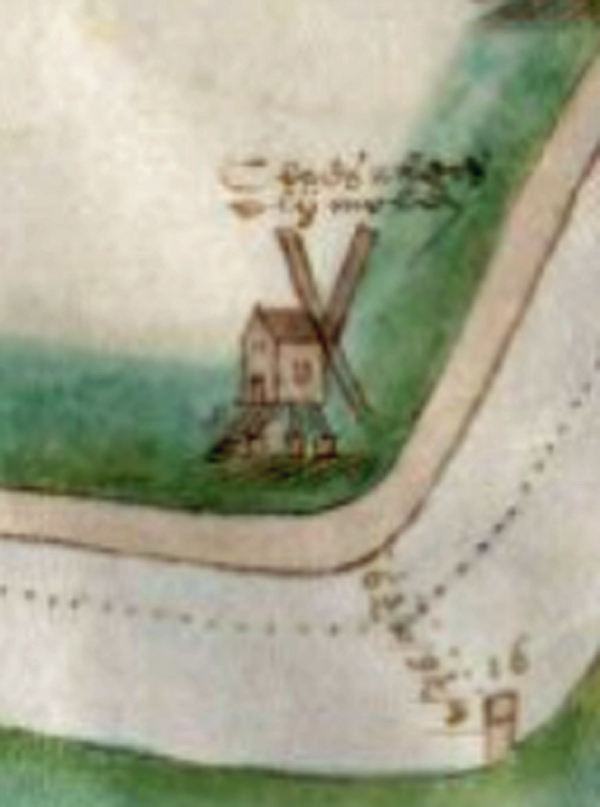 Molen 08414 De Tuchthuis (Haarlem)detail van kaart 1605 van P. Pieter Bruynsz,