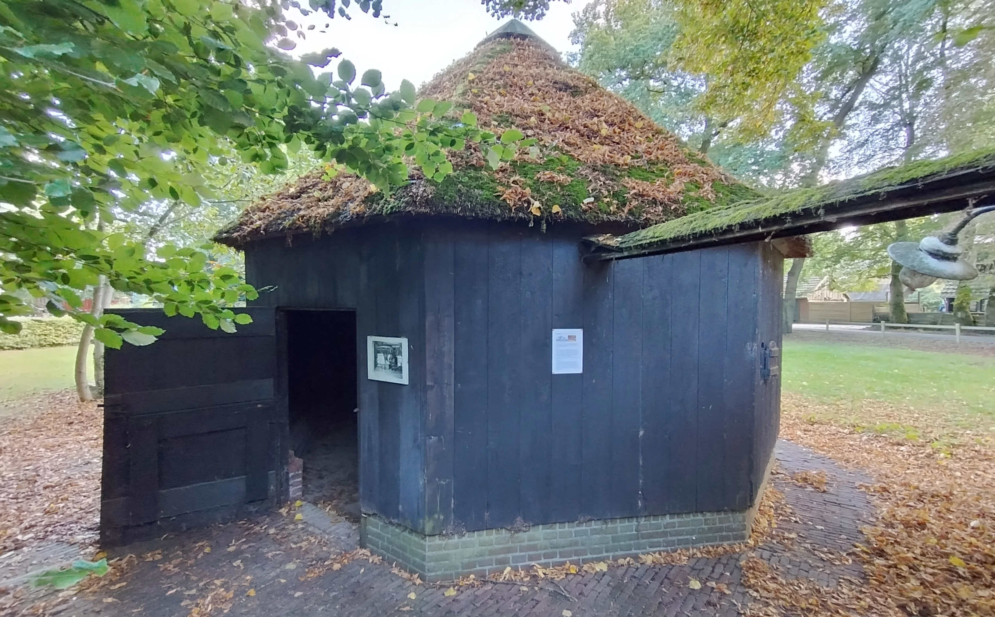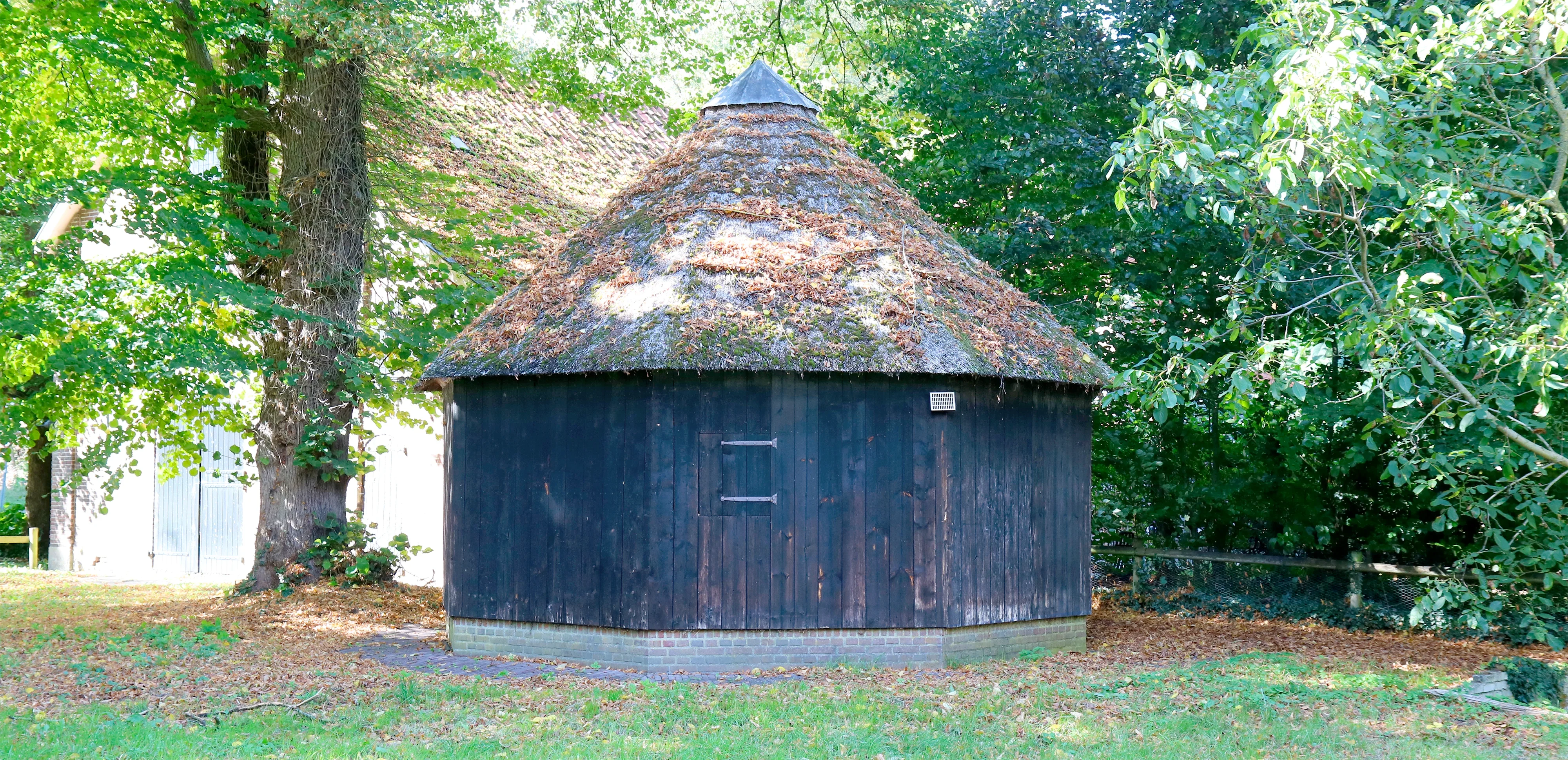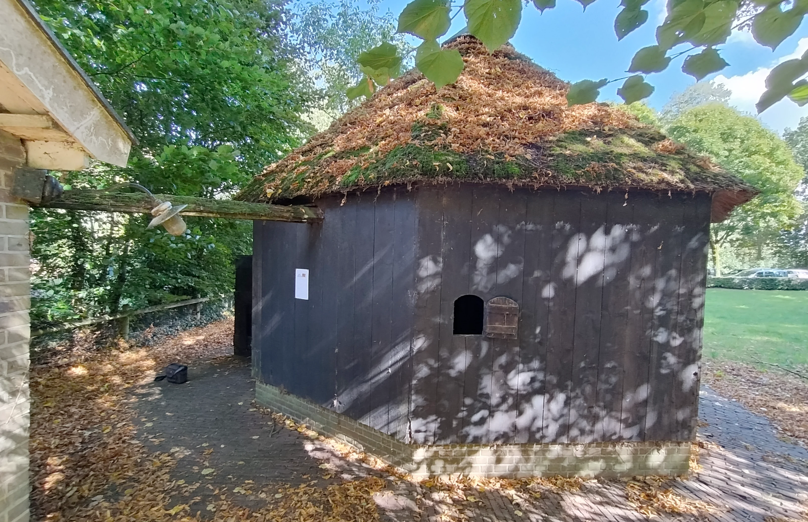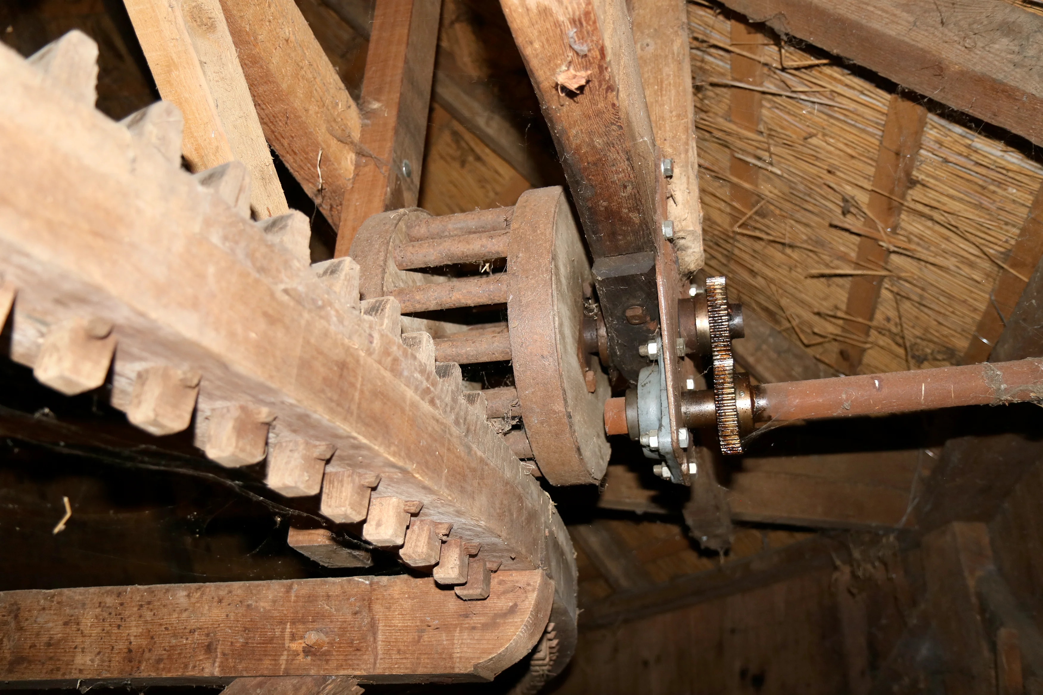 Rechts is de aandrijfstang zichtbaar waarmee werktuigen via de rosmolen konden worden aangedreven.