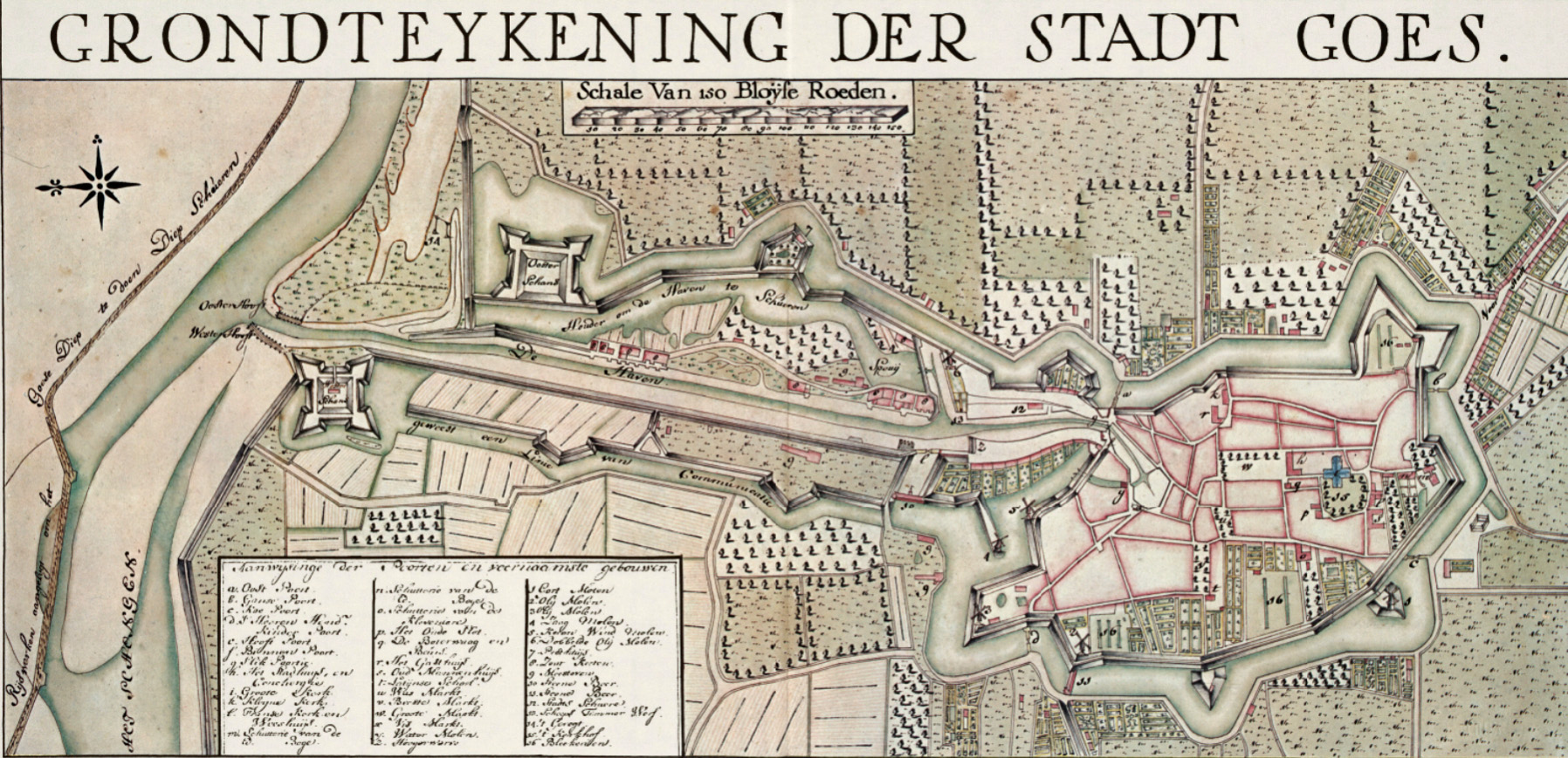 Collectie: Zeeuws Archief, MiddelburgGrondteykening der stadt Goes met aanwijsinge der poorten en voornaamste gebouwen