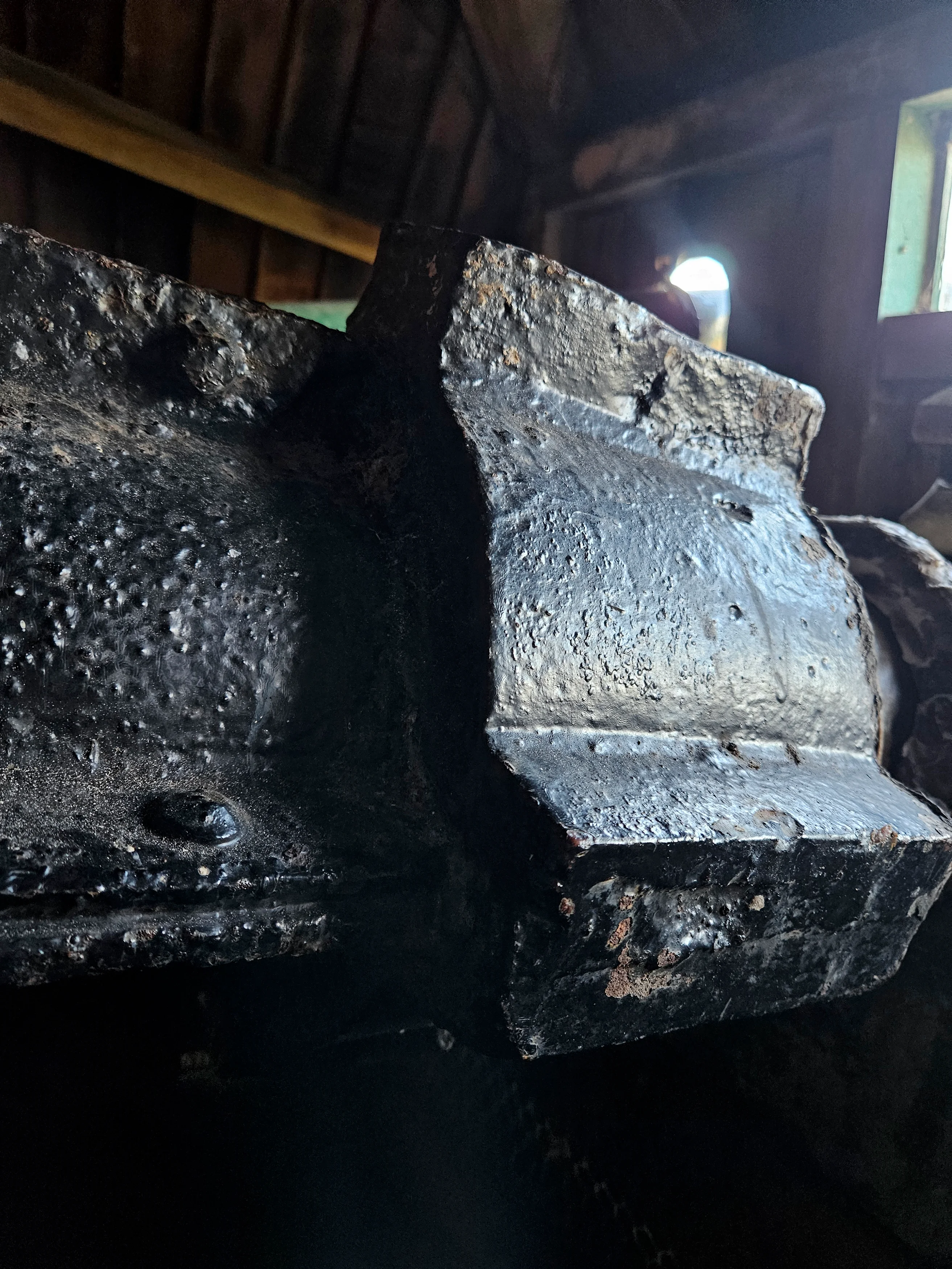 De bijzondere, geklonken Westra-as bestaande uit diverse segmenten.