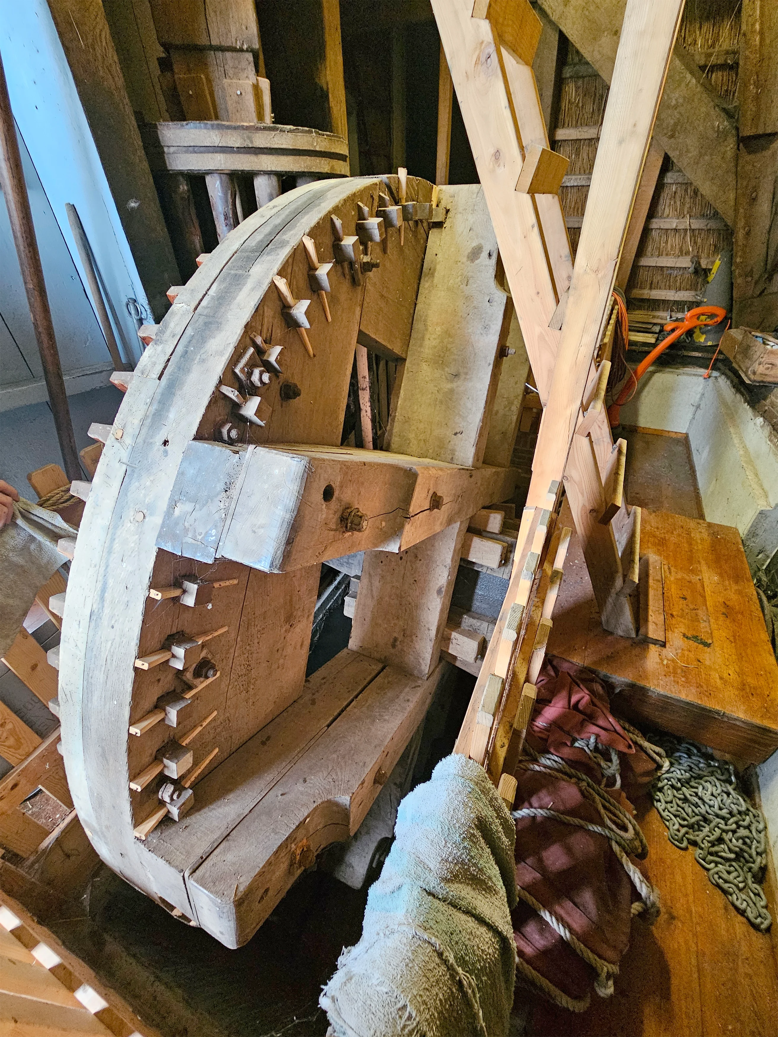 Het scheprad in half open kast.