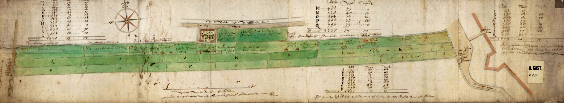 Molen 13505 De Rob / De Prins van Oranje (Amsterdam)Kaart met Gasthuislanden gelegen ten zuiden van de Heiligeweg (Overtoom) tussen de Amstelveenseweg en het wagenplein buiten de Leidsepoort
