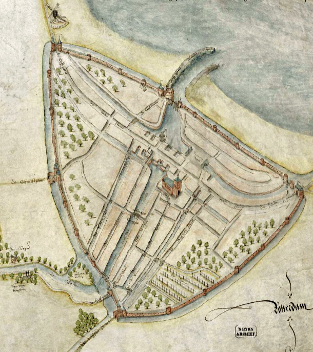 Molen 15859 (kraanmolen) (Rotterdam-centrum)Kaart van de rivier de Rotte. Januari 1567.