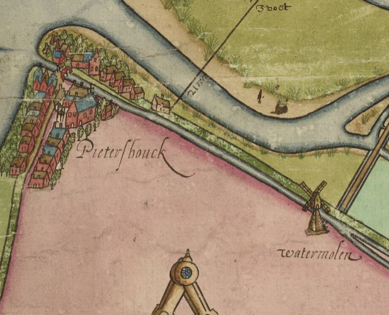 Molen 16327 Polder Het Oudeland van Maasdam en Puttershoek (Puttershoek)Collectie Nationaal Archief: nr 2131 Kaart van de gorzen van Bonaventura, Mijl, Pietershoek en Maasdam, Januari 1591