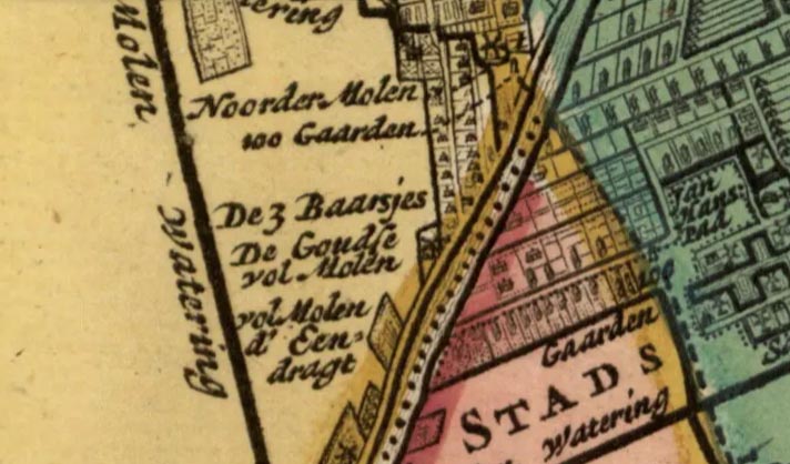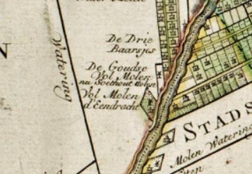 Molen 16393 De Goudse Volmolen (Amsterdam)detail kaart 1770 van Jan Mol